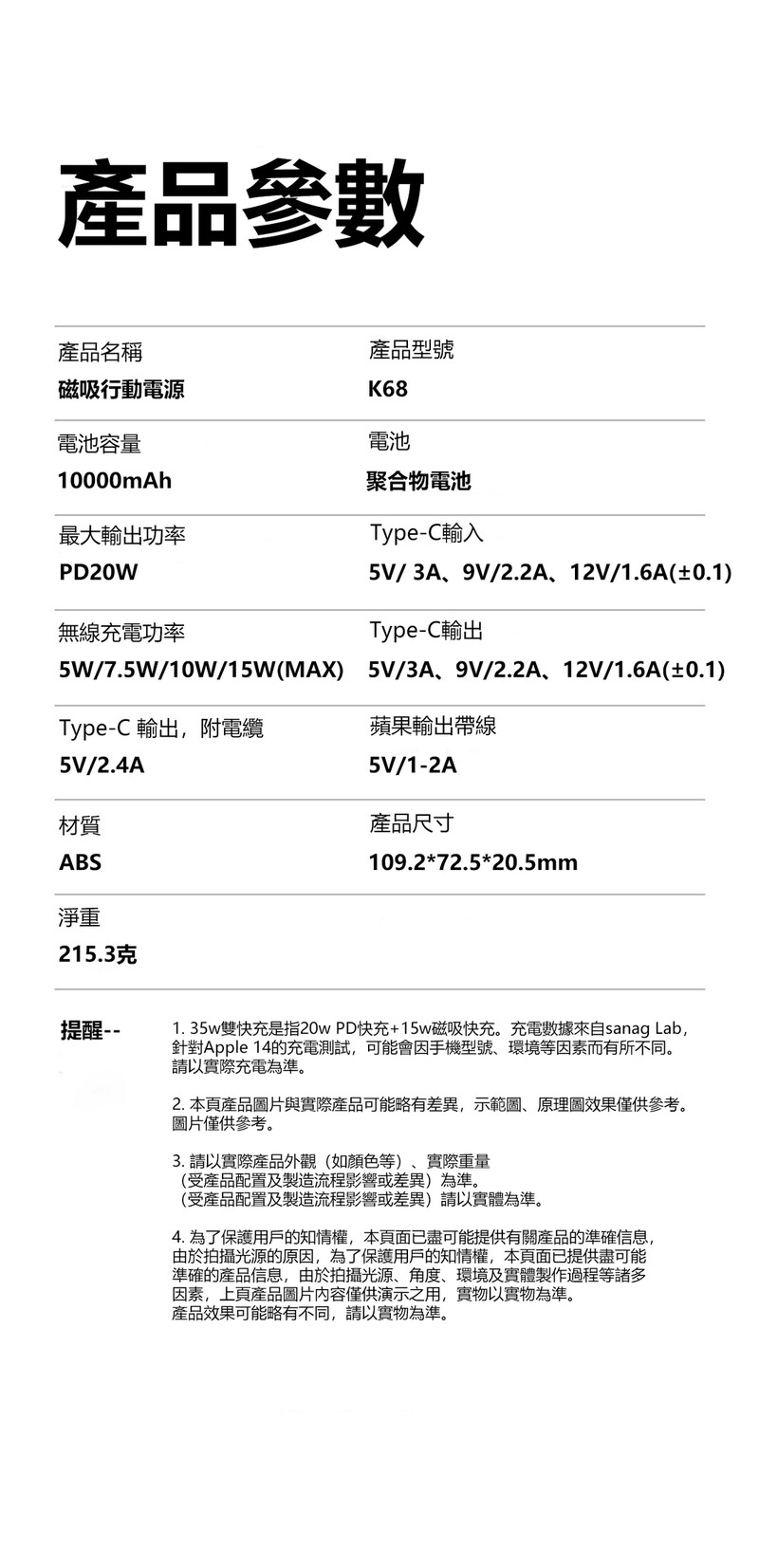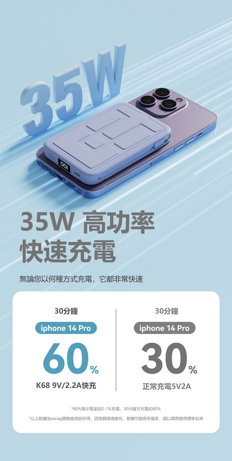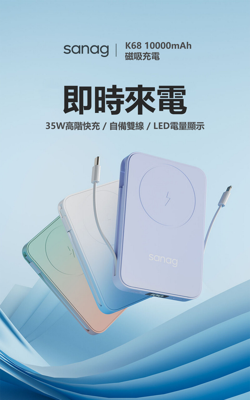 Sanag K68 超薄磁吸快充屏顯行動電源充電寶