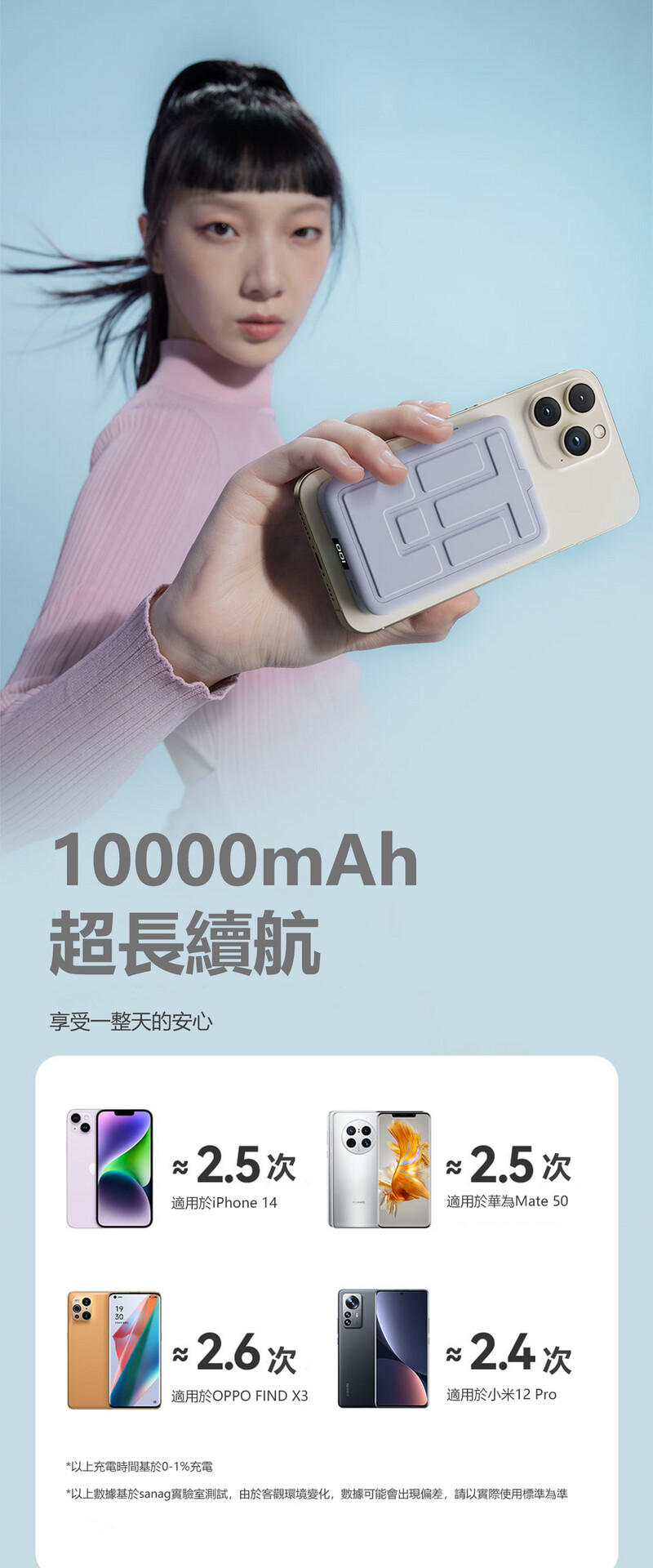 10000mAh長續航, 放心享受一整天 (可充iPhone 14 2.5次)