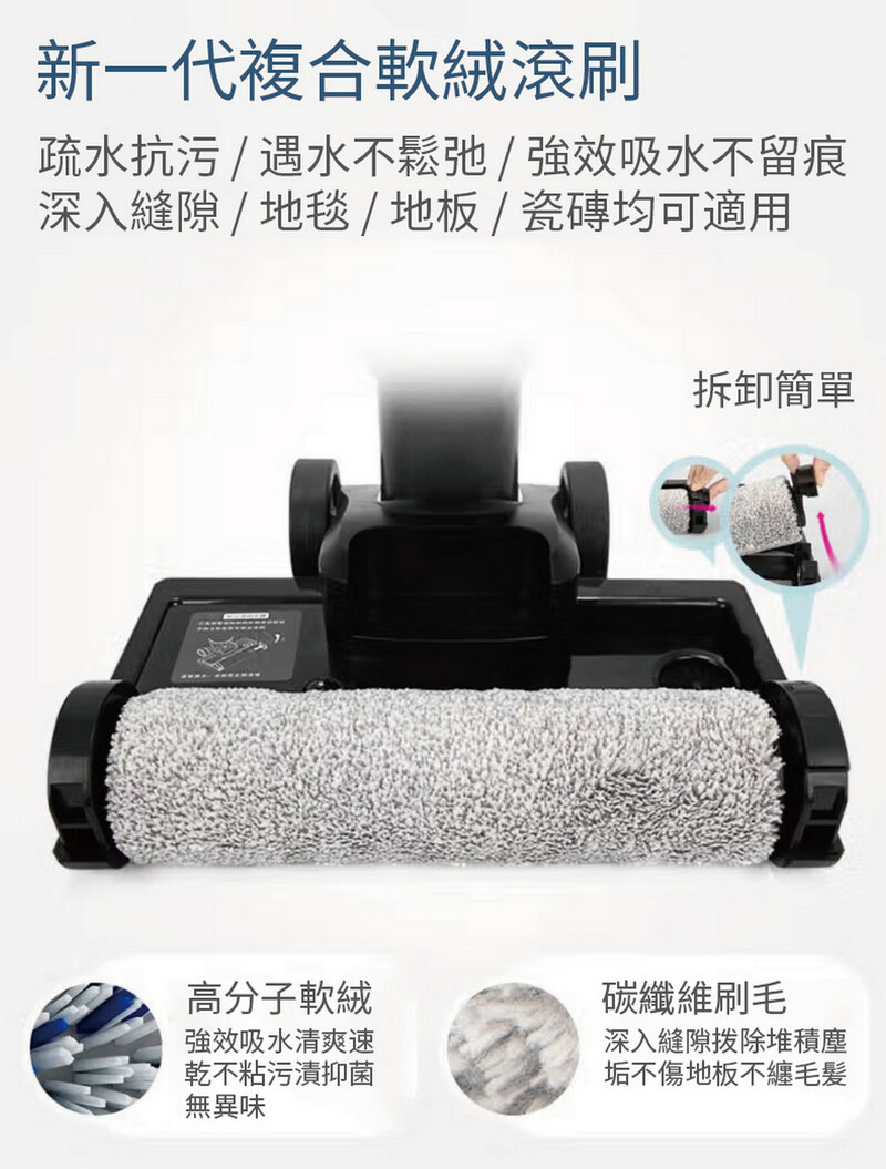 * 乾濕兩用, 帶HEPA濾網,食物殘渣乾濕垃圾一掃而光,多功能滾輪刷毛, 深層清潔軟硬地板