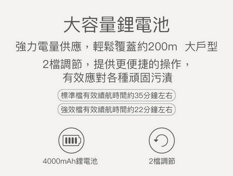 * 無線續航力最高達35分鐘, 電量足夠全屋清潔