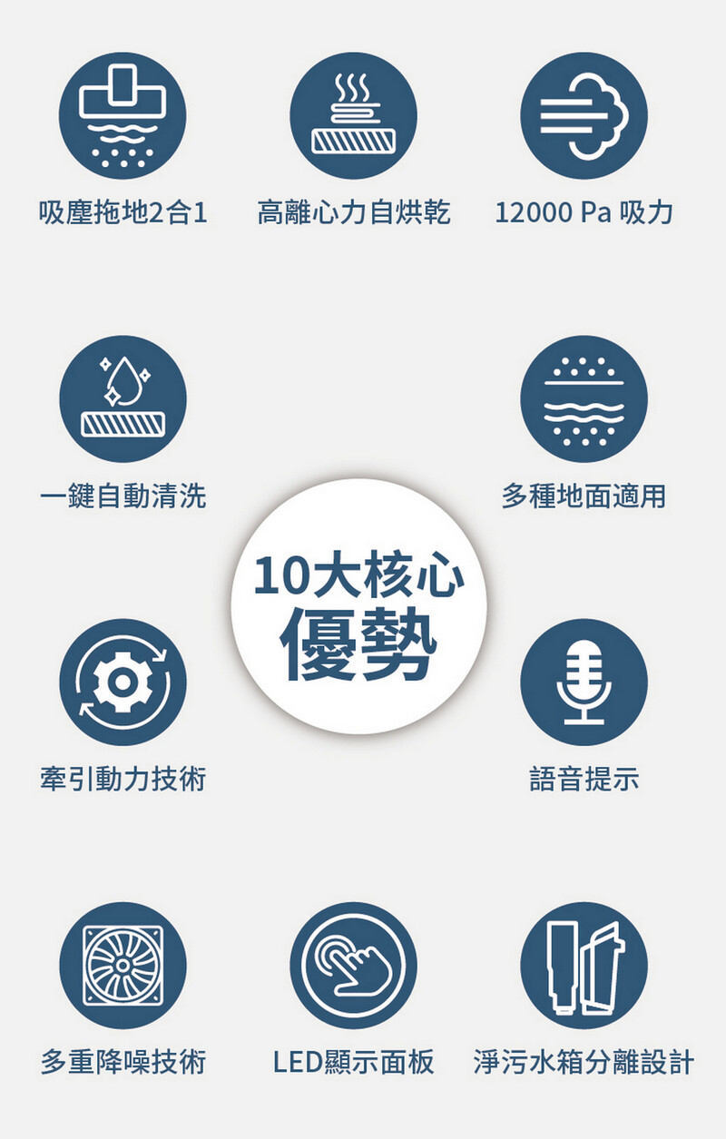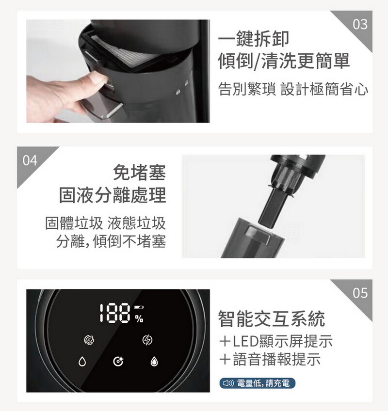 * 吸塵拖地一次解決,LED彩屏顯示,一部機幫你搞掂全家地板,再也不用重複清潔