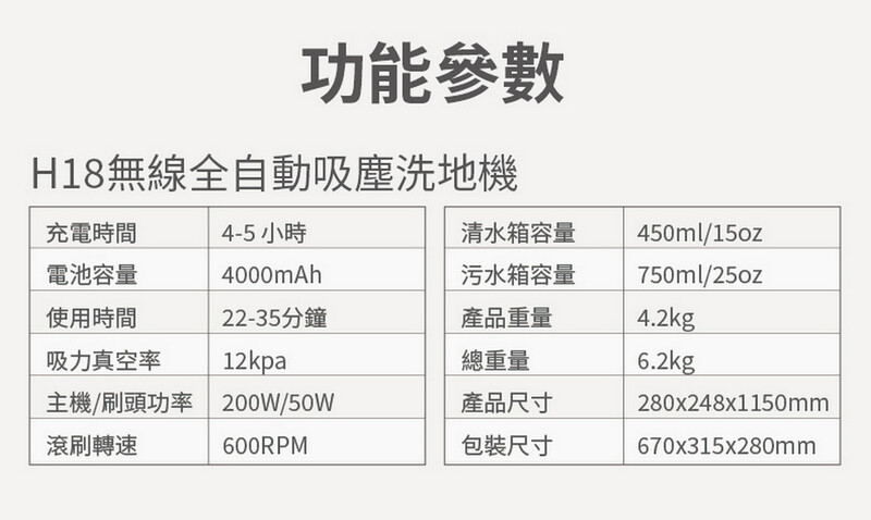 * 超高70,000rpm馬達轉速, 同樣洗地, H18洗得更幹淨