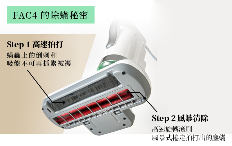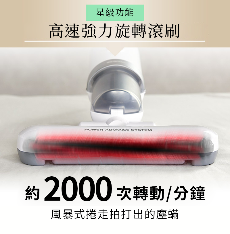 1. 獨有的高速強力旋轉滾刷,風暴式捲走拍打出的塵蟎