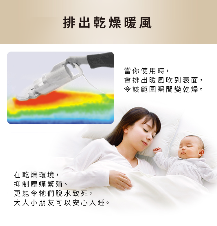 乾燥環境可抑制塵蟎繁殖,更能令牠們脫水致死,大人小朋友可以安心入睡
