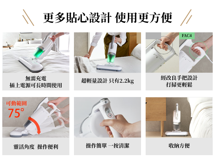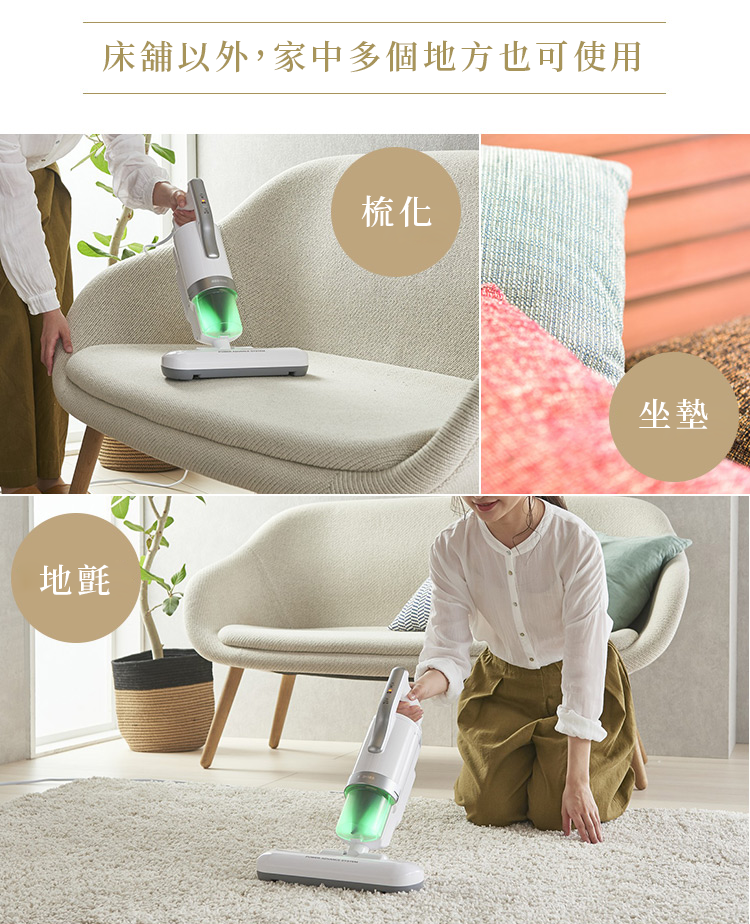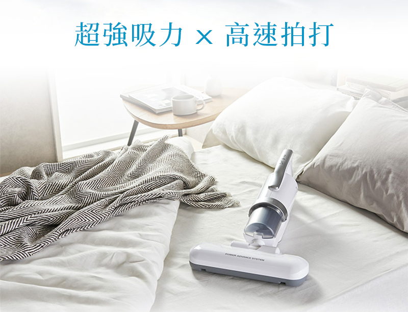 超強吸力配合高速拍打,除蟎率達99% 以上,徹底將潛藏在被褥中的蟎蟲灰塵清除