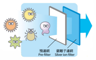「智能乾衣」模式在監測房間濕度的同時控制風量,估計衣物乾燥時間並自動停止運轉,操作簡便兼節省能源。「夜間乾衣」模式運轉時較為寧靜,適合晚間使用。1-9 小時自動開 / 關。2. 銀離子濾網*