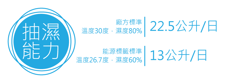 抽濕能力 (公升/日) (30°C 80%) :22.5抽濕能力 (公升/日) (26.7°C 60%) :13