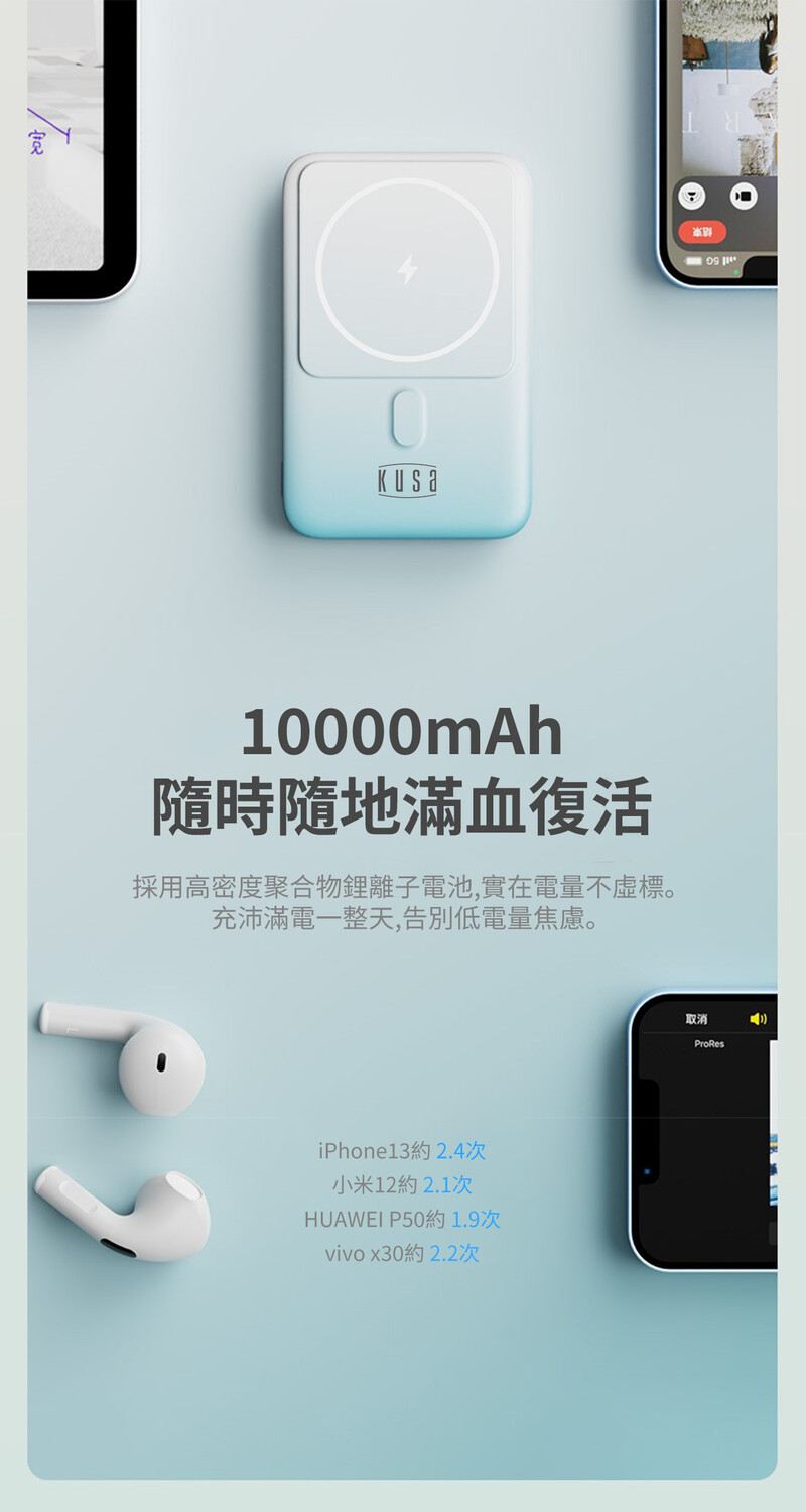 Kusa - Q600 超薄小巧快充Magsafe無線磁吸充電寶升級版【原裝行貨】【免運費】