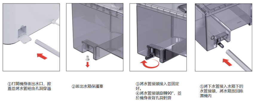 配件內容:產品主體、電源線收線架、排水管、說明書