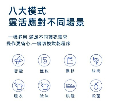 ▐Morus Zero家用小型乾衣機特點三: 八大模式,靈活應對不同生活場景
