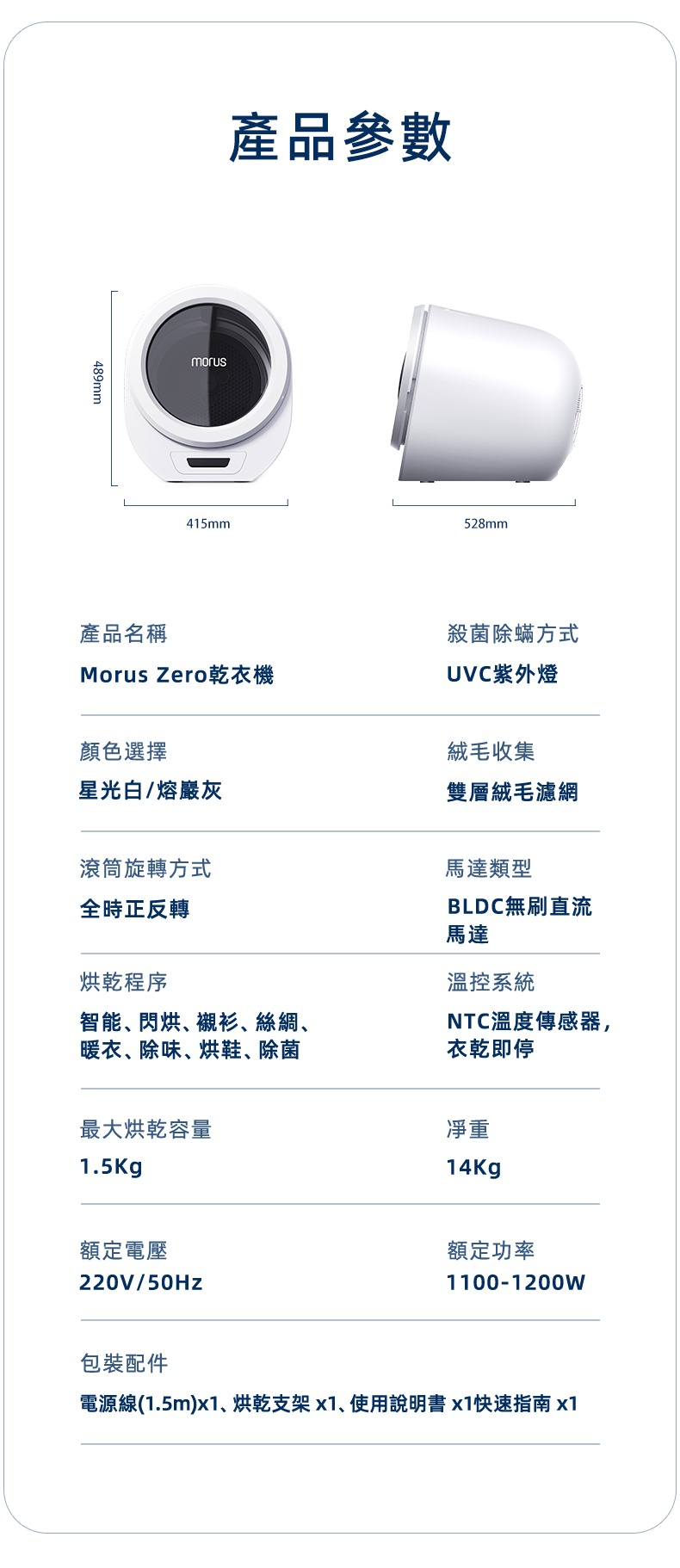 *15min快速烘乾:此數據來源Morus實驗室,測試使用Morus Zero Quick 速乾模式,測試物為1件60%棉總重300g襯衫,烘乾完畢衣物含水量<1%,烘乾時長可能因布料材質、尺寸大小、含水量等不同存在差異,以實際使用情況為準。