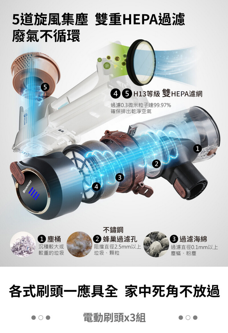 • 旗艦25,000Pa超強吸力吸塵