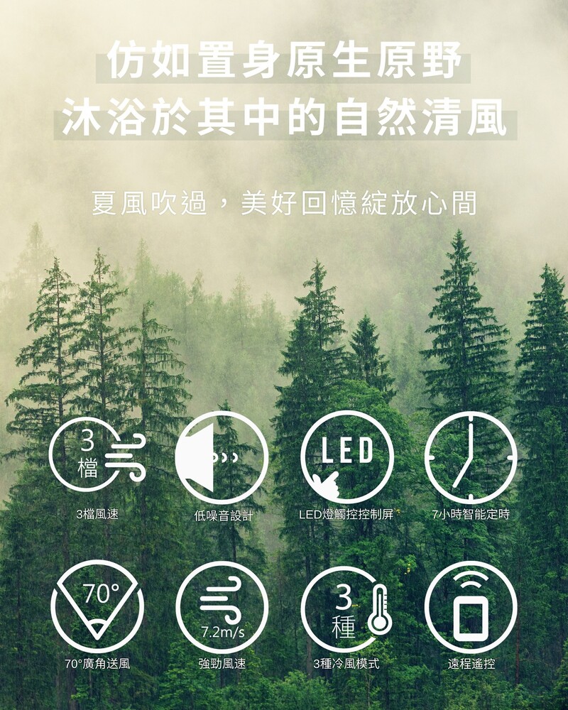 3種冷風模式:正常, 自然風, 睡眠,