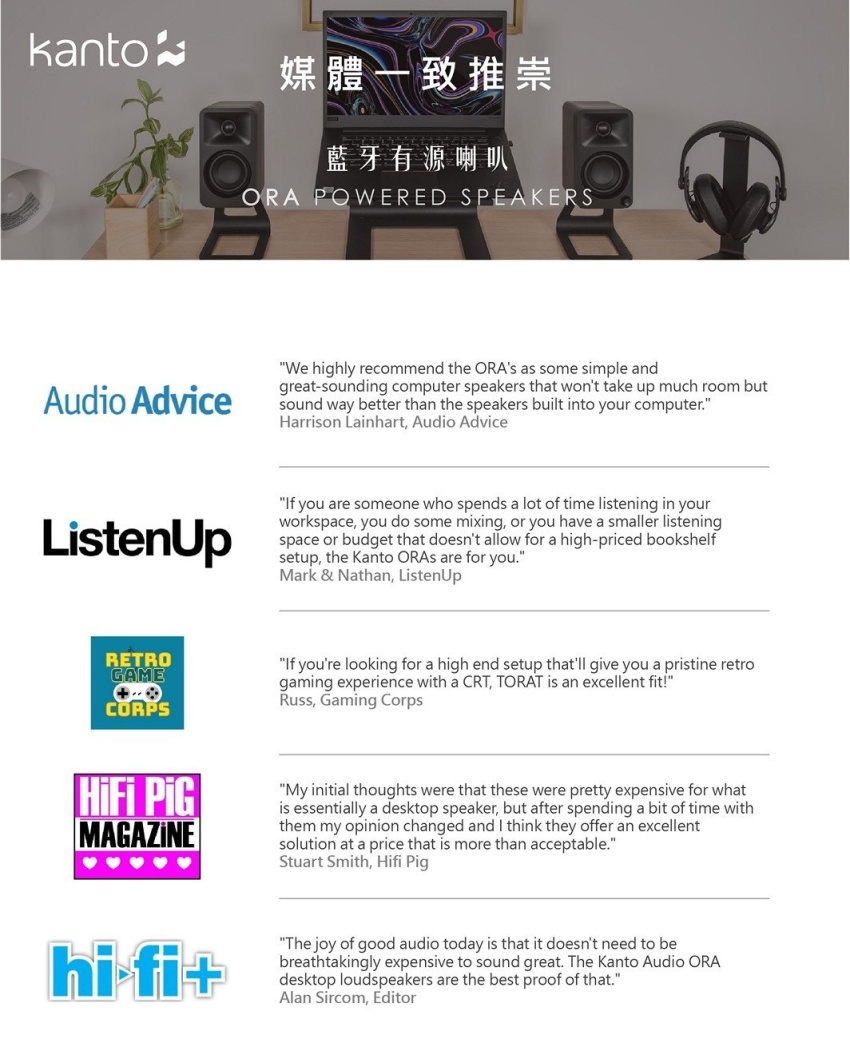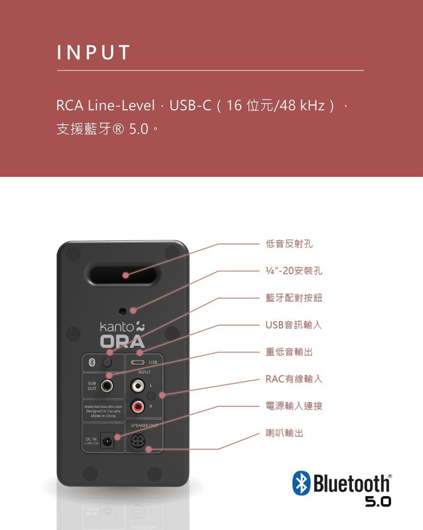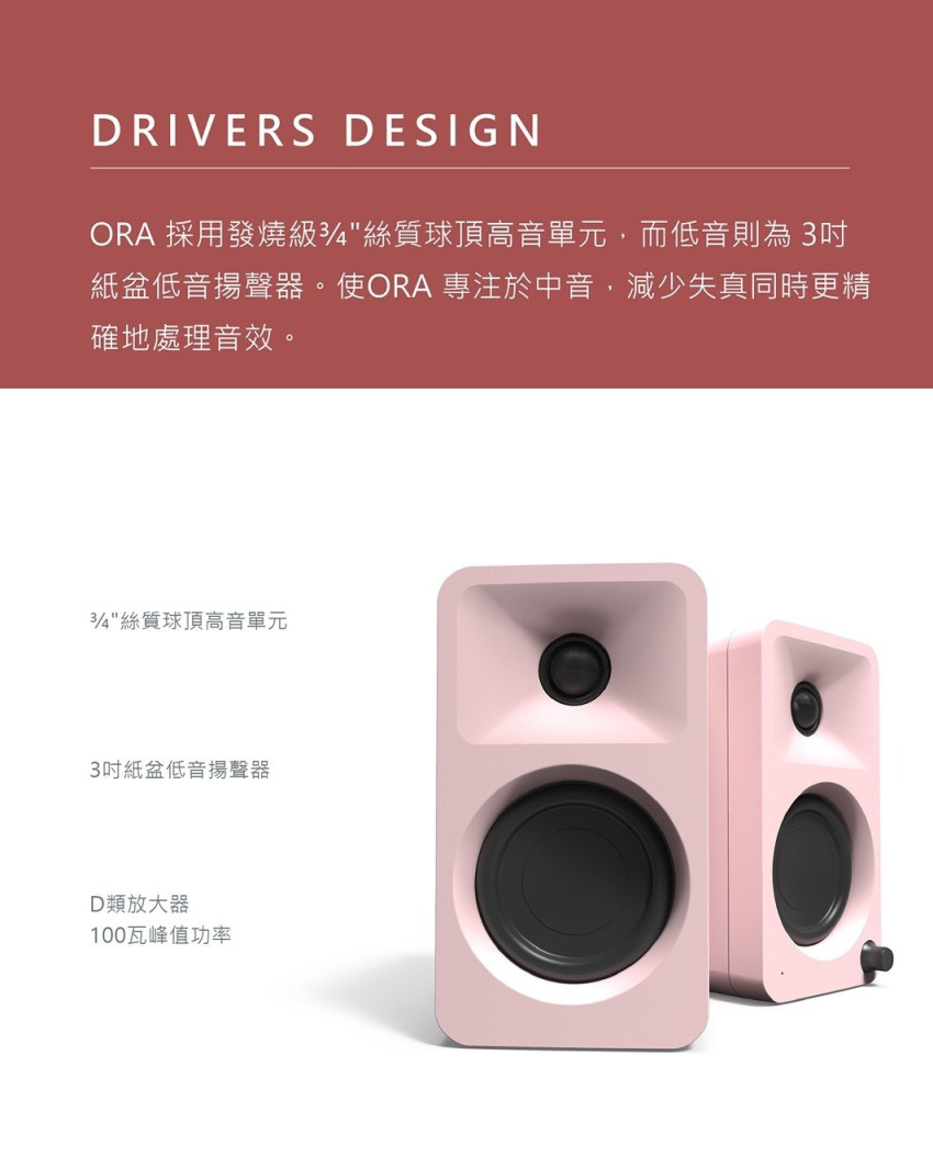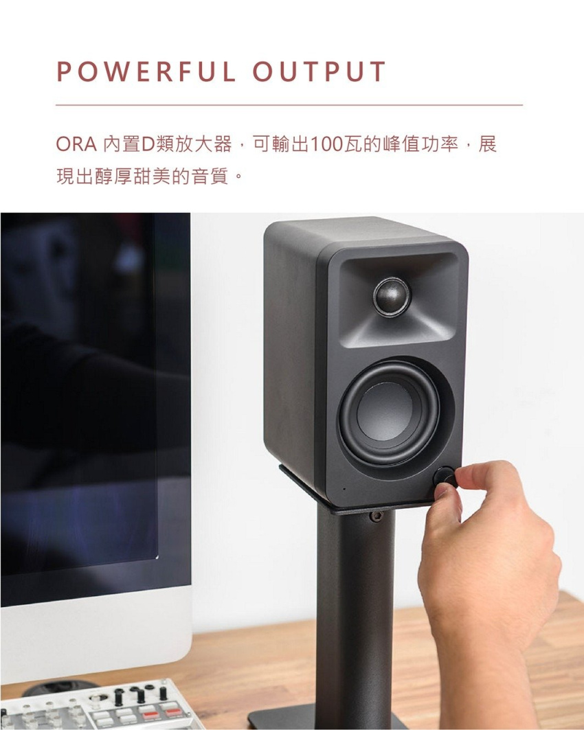 - ORA 的高音喇叭單元和低音喇叭單元由單獨的擴大機驅動,使它們能夠專注於特定頻段,而不會浪費功率