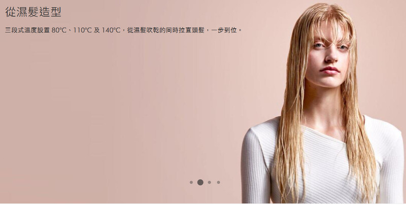 三段式溫度設置80°C、110°C及140°C,從濕髮吹乾的同時拉直頭髮,一步到位。