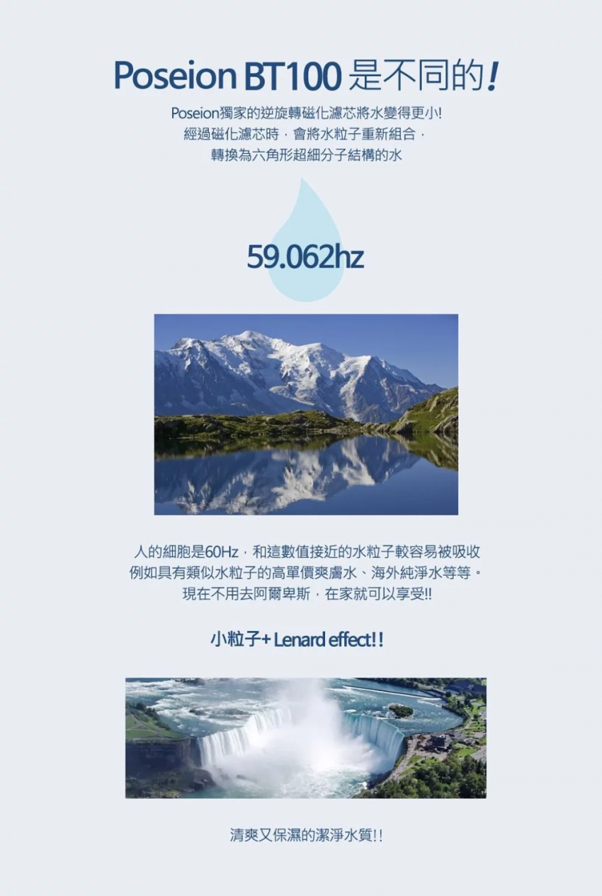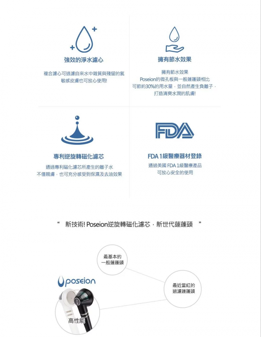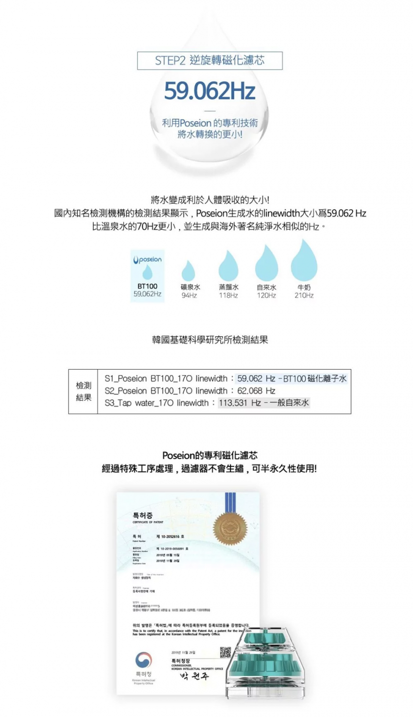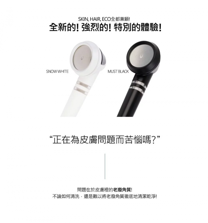 - 專利磁化頭:將水的大分子結構轉為小分子(六角) 省水去汙、加強保濕,預防掉髮