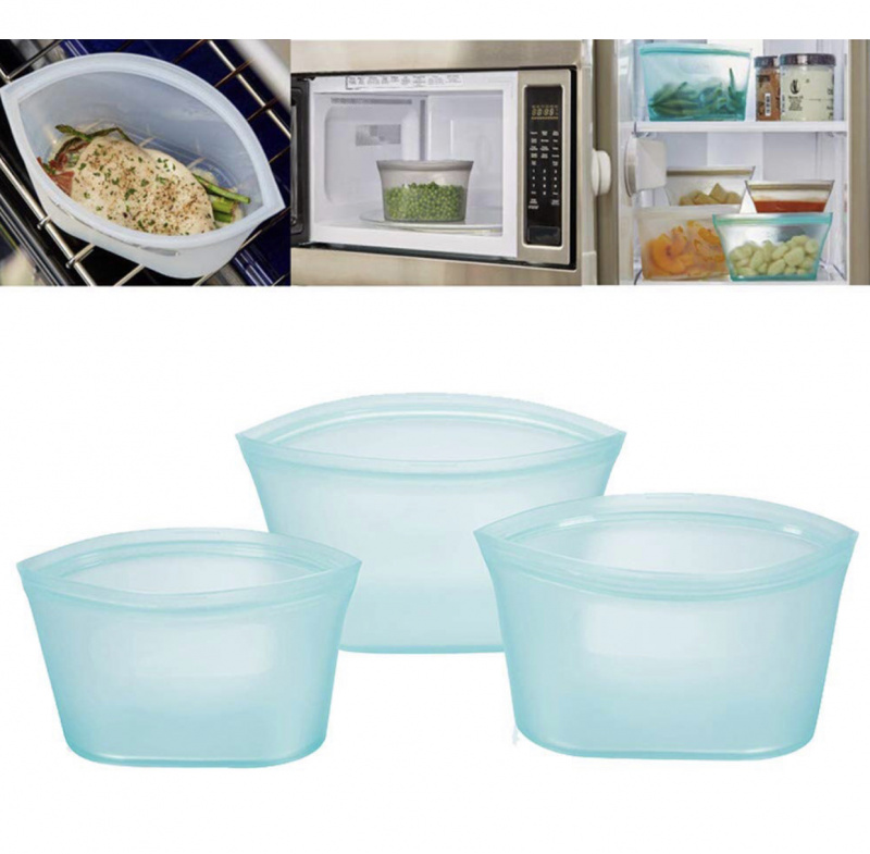 • 3 個可重複使用的矽膠食物儲存保鮮袋,立式拉鍊,防漏密封容器