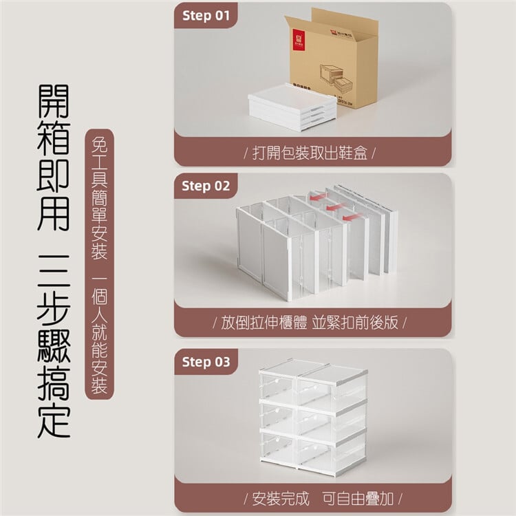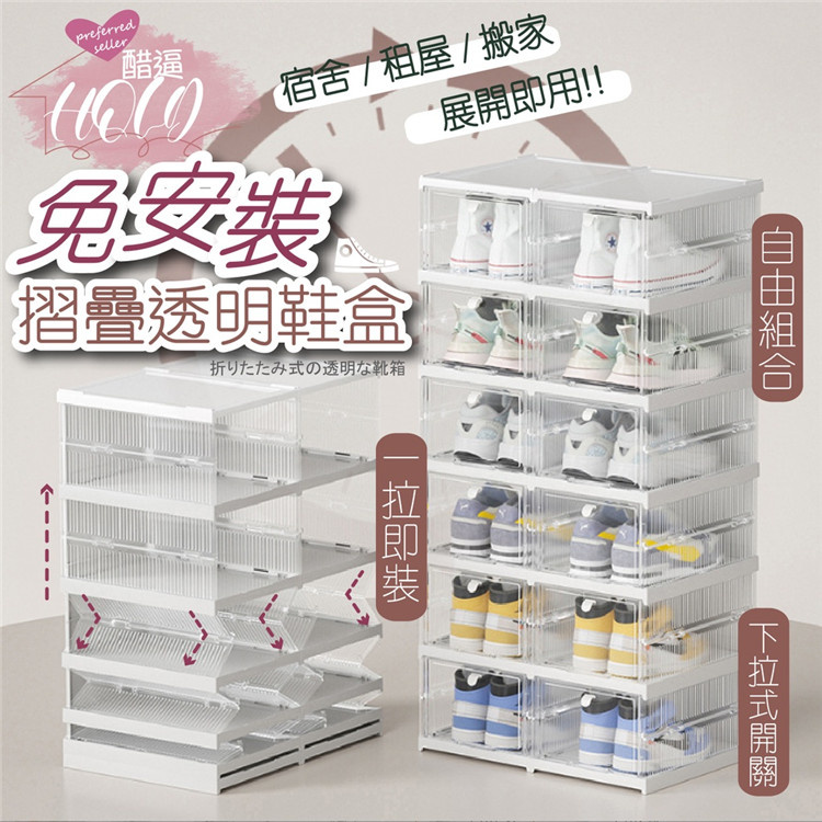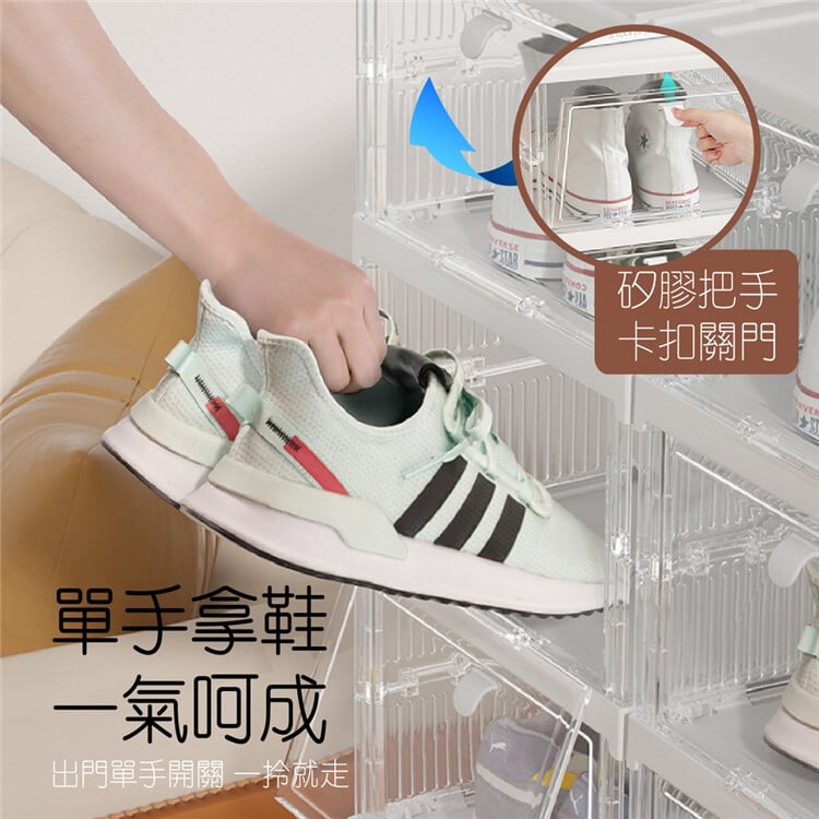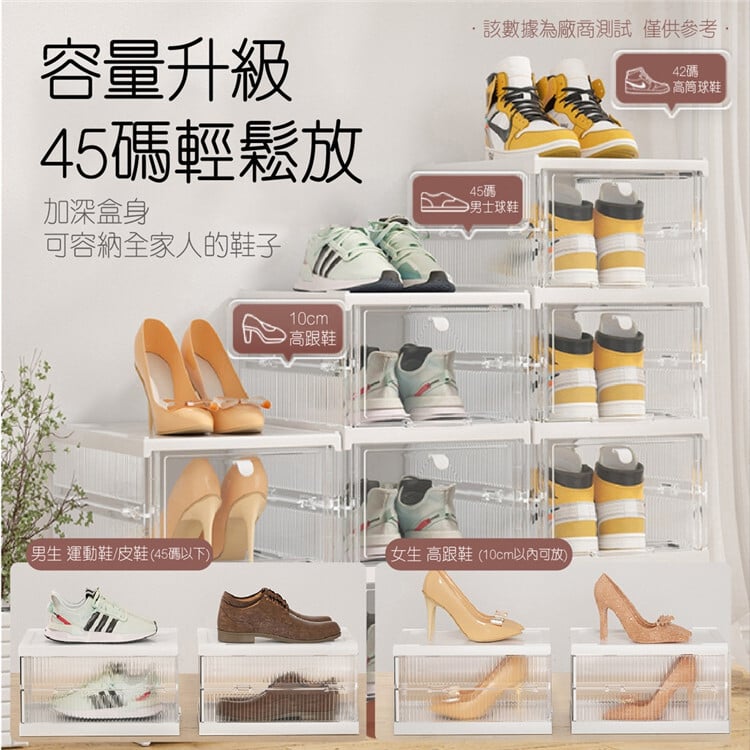 免安裝摺疊鞋盒 自動推出開蓋 自由堆疊超大尺碼籃球鞋、短靴、高跟鞋均適用