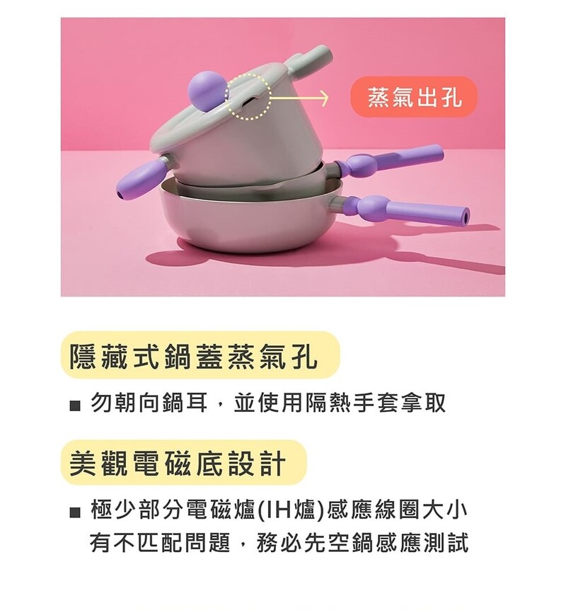 ●為維持商品美觀,建議使用手洗,若有需求使用於洗碗機,請務必使用中性清潔劑,並避免碰撞,若塗層脫落請勿浸泡且於清洗完立刻擦乾,以免底部電磁底露出而生鏽