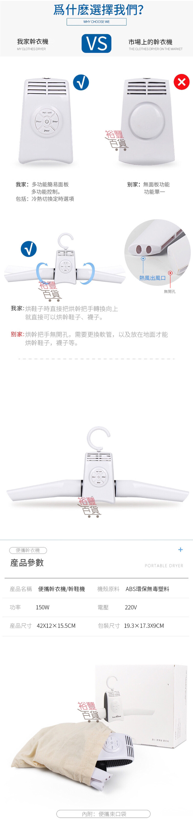 - 可伸縮管型掛架,可配合任何鞋子,變身亁鞋器