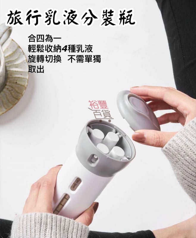 旅行乳液分裝瓶 合四為一 輕鬆收納4種乳液 旋轉切換  不需單獨取出