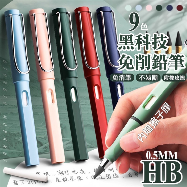 黑科技免刨鉛筆(4支裝) 內贈橡皮擦 顏色9色 隨機出貨