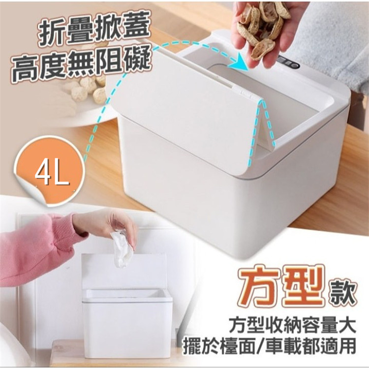 智能感應垃圾桶 (方型4L)自動掀蓋感應桶 桌上型 車用型 方便又實用。