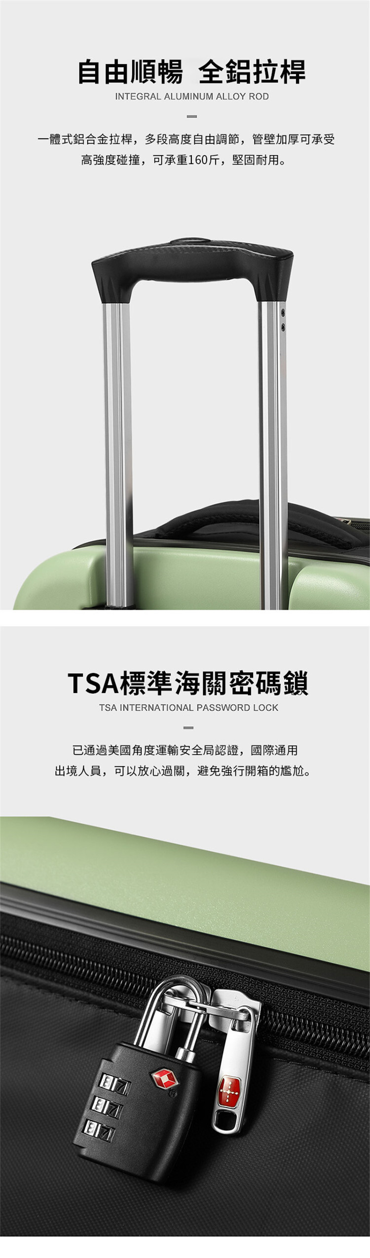 -鋁合金拉桿,輕巧、堅固、耐用