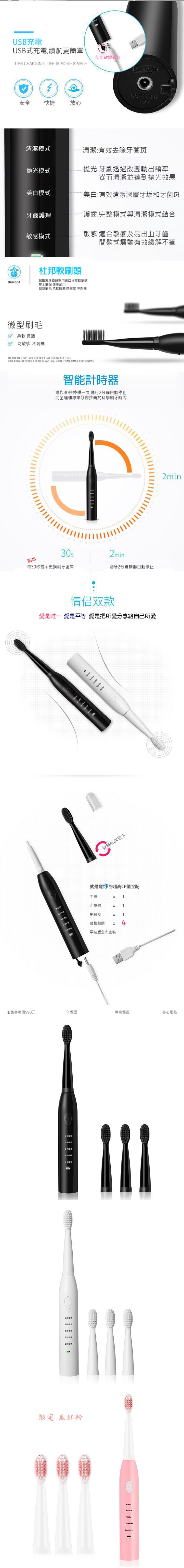 超聲波電動牙刷(3色) 內附贈刷頭x4
