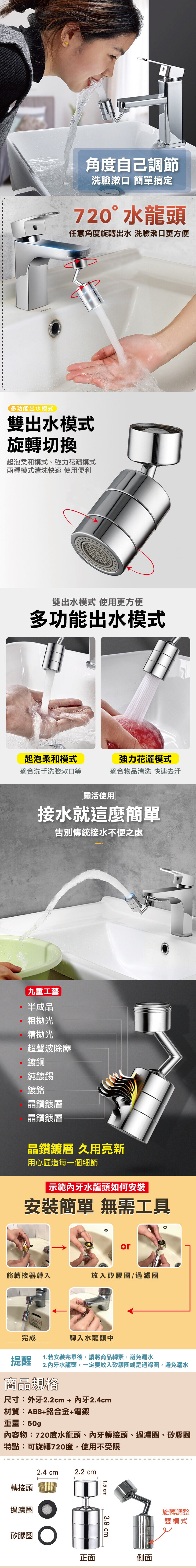 720度萬向旋轉水龍頭轉接器