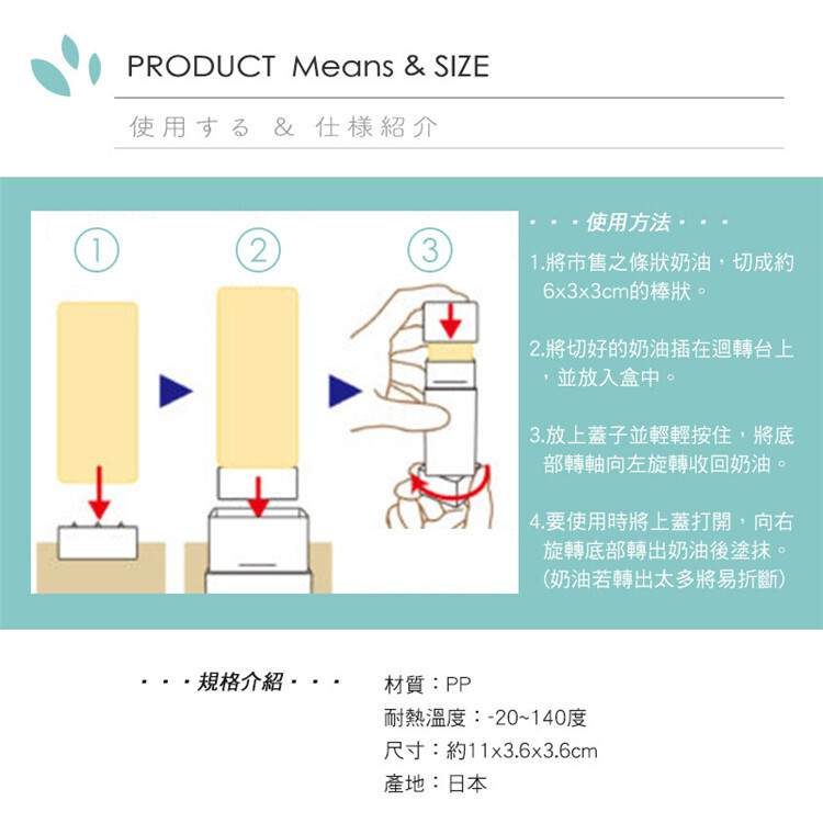 ★如口紅膠般旋轉出奶油,輕鬆塗抹