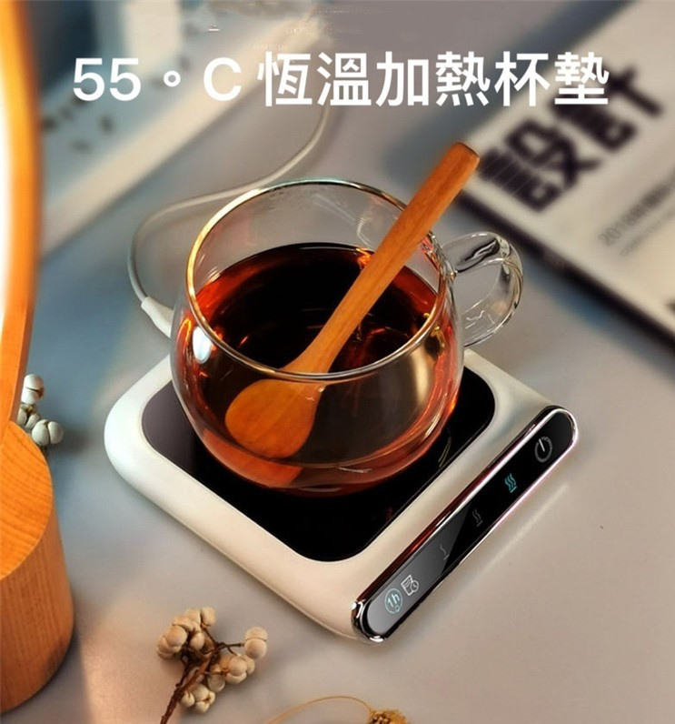 三檔恆溫底座-可選低溫,中溫,高溫,智能操控,即可維持55度全天恆溫,不用再糾結電壓問題,鋼化玻璃面板,傳熱效率和電能轉化率更好,自動斷電保護,即使忘記關機也會斷電,工作之餘來杯溫熱的咖啡、茶