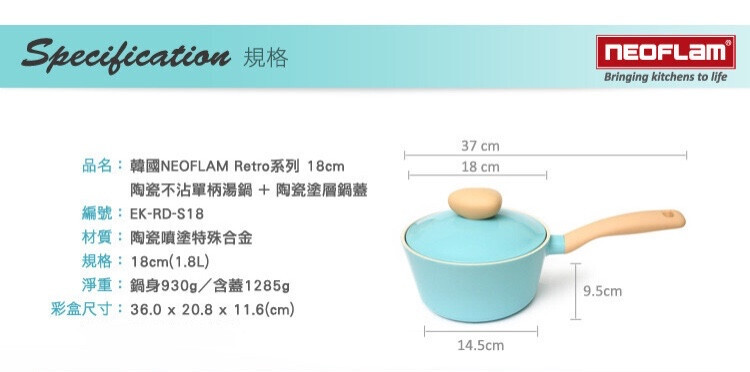 尺寸:鍋徑18 (含手把37cm)* 高9.5 cm