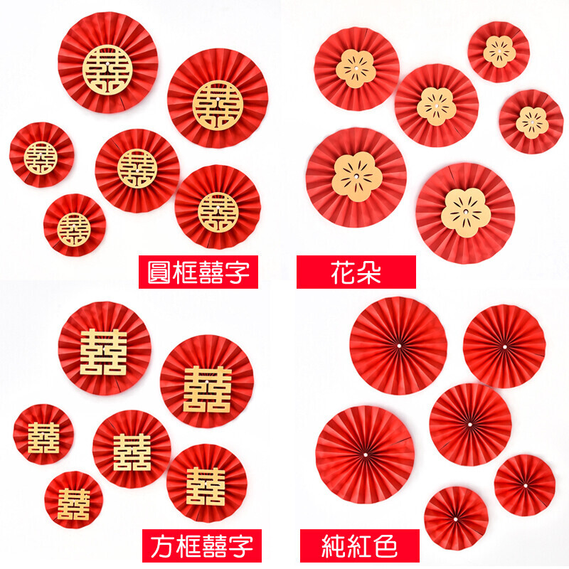 款式:A款-圓框福字 /B款-圓囍字/C款-花朵/D款-純紅色