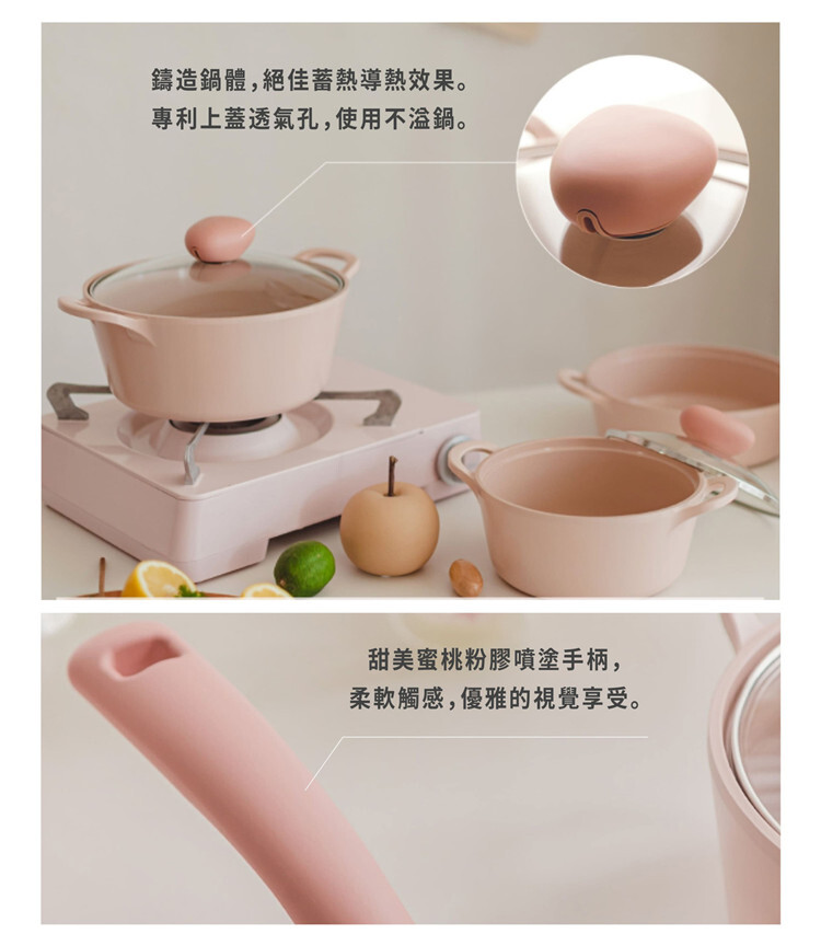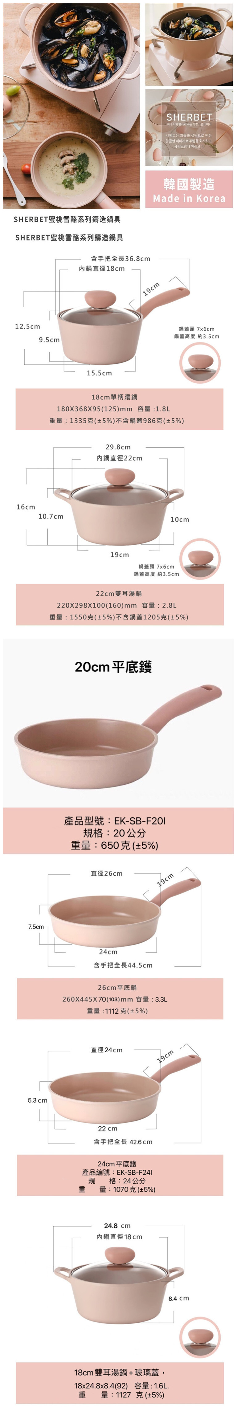 品  名:Sherbet系列22cm雙耳湯鍋+玻璃蓋-蜜桃雪酪