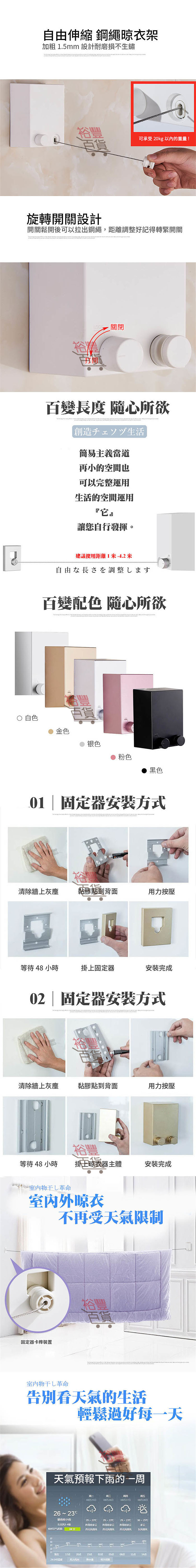 2.請仔細檢查裝置曬衣繩的端點是否穩固