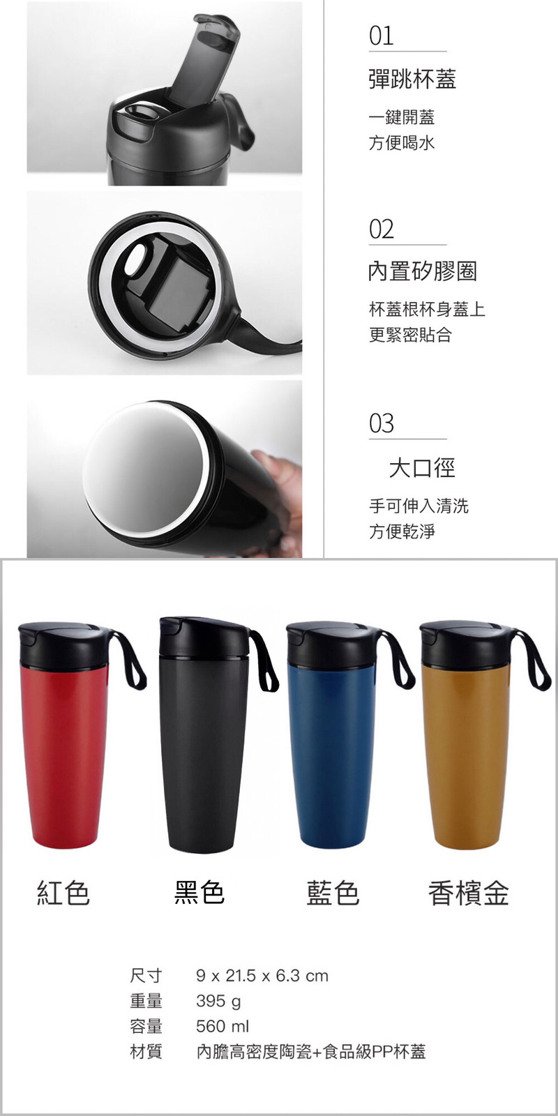 🔖 材質:內膽高密度陶瓷+食品級PP杯蓋