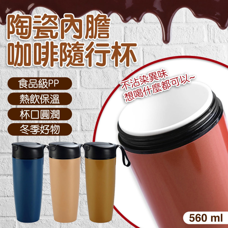 陶瓷內膽彈蓋式保溫杯 560ML大容量