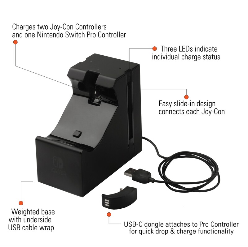 . PowerA 任天堂 Joy-Con 充電座 Joy-con 及 Pro 手掣充電座 - 黑 -