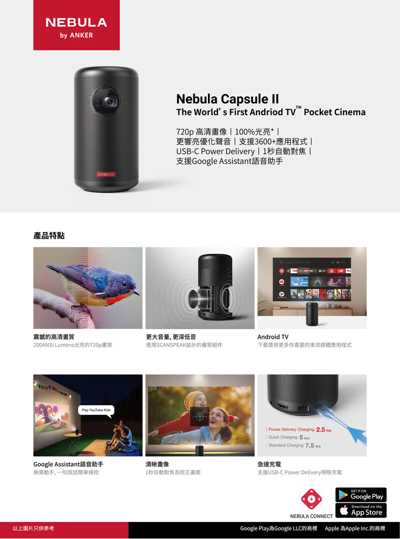 | 內含 | Capsule II本體, 搖控器, PD充電器, Type-C 充電線 |