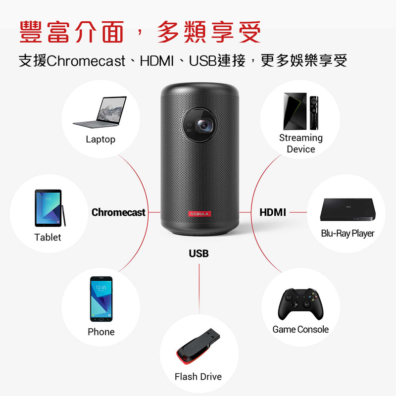 | 連接介面 | USB-C, HDMI, USB, AUX-Out, Wi-Fi, Bluetooth (V4.2), Chromecast |