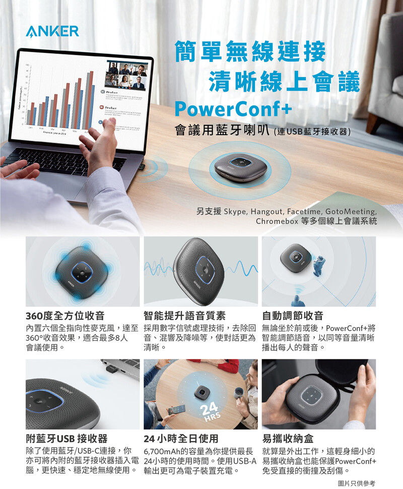 - 實時減降回音(至70dB), 抗混響及降背景噪音(減20dB),確保清晰話音