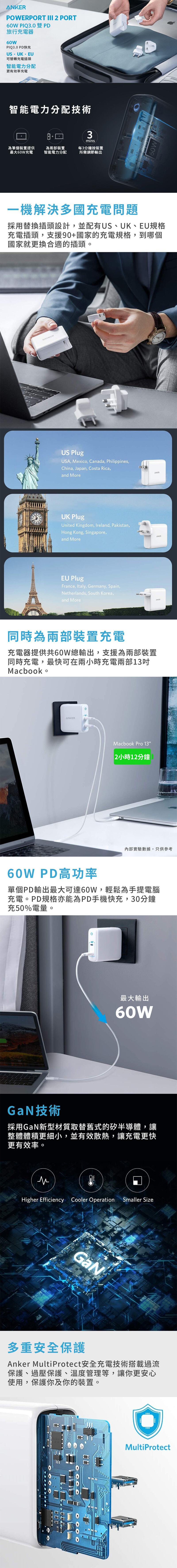 - PowerIQ 3.0 (PD) 60W 高速充電 (適合為MacBook, MacBook Air, Switch, iPad 2018 iPhone 12, Samsung Galaxy 等充電)