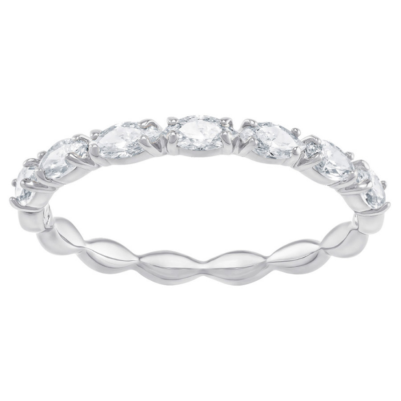 這款瑰麗別緻的鍍白金色戒指,在簡約魅力與奢華格調之間取得完美平衡。整枚戒指均鑲有閃爍耀眼的欖尖形Swarovski水晶,無論是單獨佩戴或搭配其他戒指皆賞心悅目,並可為日常裝扮增添迷人點綴。