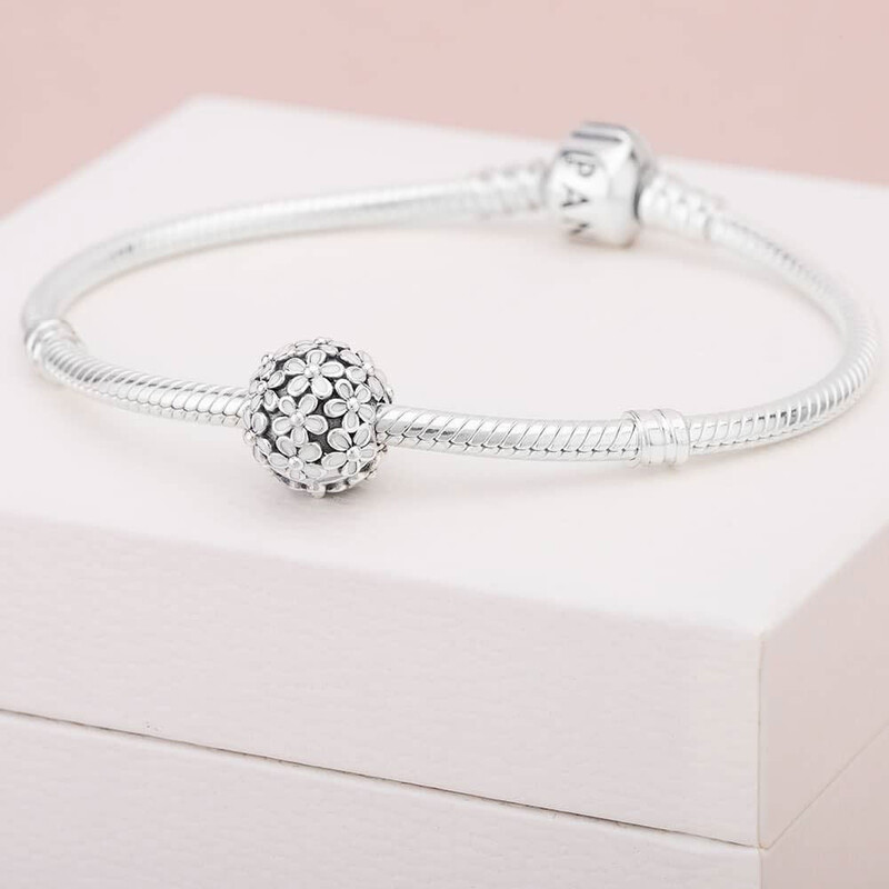 A sweet and tender daisy clip by PANDORA, crafted from sterling silver and finished with hand-applied white enamel.