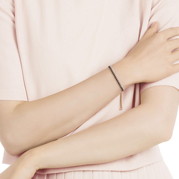 • 這款精緻悅目的鍍玫瑰金色手鏈,以纖巧講究的Swarovski水晶爪鏈,搭配充滿線條感又搶眼的黑色Swarovski水晶爪鏈,加上可輕鬆調校尺寸的球形滑扣,佩戴時更舒適貼合。含蓄閃亮的獨特設計,讓您時刻成為迷人焦點。