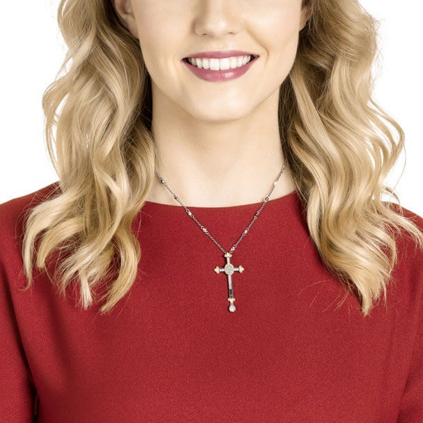 This stunning pendant is a perfect showcase of Swarovski’s unified love of the classic and the contemporary. With a distinctly antique feel, the cross motif features a luxurious mix of subtly shaded crystal colors, platings, and micro Crystal Pearls. A feminine design, which is both glamorous and refined. Matching items available.