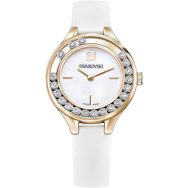 這款配以白色真皮錶帶的手錶,是品牌暢銷系列Lovely Crystals的時尚新作。玫瑰金色塗層不銹鋼錶殼上,鑲有20顆閃爍悅目的活動式Swarovski水晶,加上白色珍珠貝母錶盤,為嫵媚優雅的設計增添迷人光彩,更是日常裝扮及特別場合的配飾首選。錶殼 - 31毫米﹔50米防水功能﹔瑞士製造。