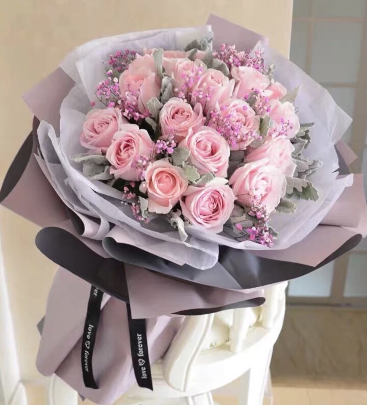 款式2: 粉紅玫瑰配滿天星圓形花束 [18枝]