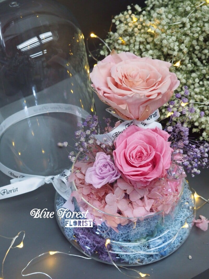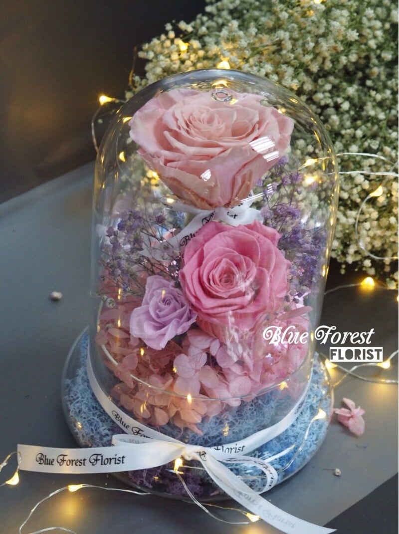 款式7: 保鮮•愛*發光玻璃罩玫瑰保鮮花系列 淺粉紅配深粉紅